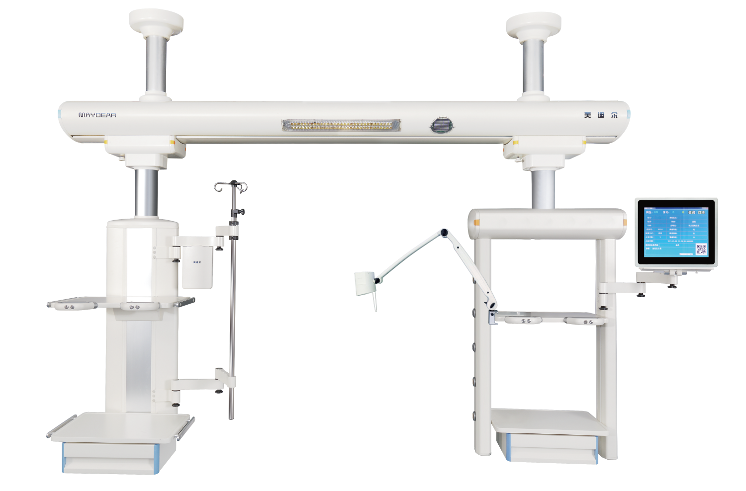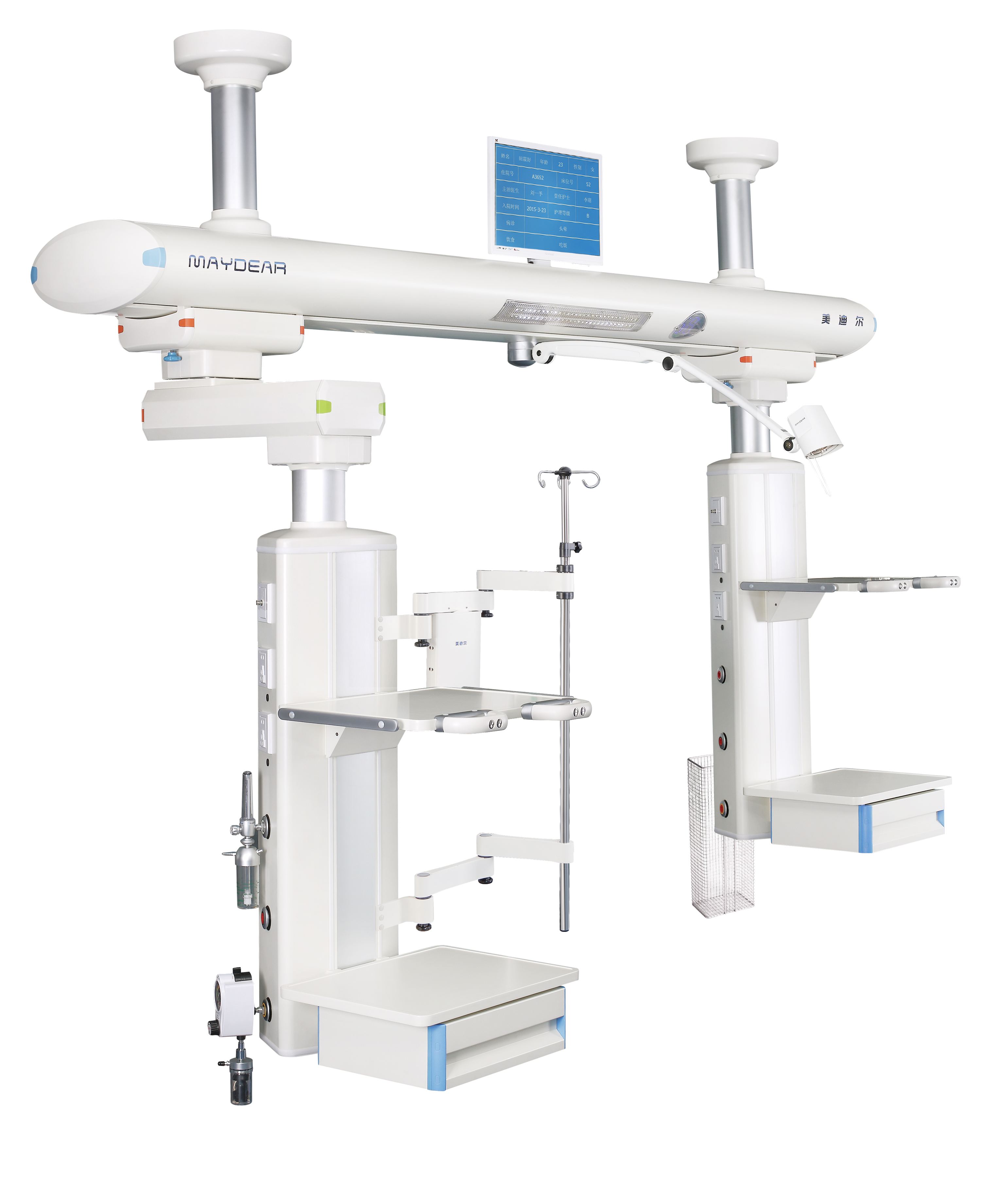 ICU 干濕分離旋臂吊橋 適用于醫(yī)院ICU病房,是現(xiàn)代重癥監(jiān)護病房必備的醫(yī)療搶救輔助設備,主要由橋架,干段和濕段組成。其特點在于合理的干濕分離結構,濕段配置升降靈活的輸液架和輸液泵架。干濕段配置有可升降調(diào)節(jié)的醫(yī)療監(jiān)護儀器平臺,在干濕段上分別將氧氣,空氣,吸引,強弱電,網(wǎng)絡輸入終端配置在醫(yī)護人員抬手可及的塔體上。濕段采用懸臂結構,提高了治療空間,移動旋轉(zhuǎn)部分采用氣控制動防飄移,桁架中央配置一款環(huán)保,節(jié)能的LED照明治療。為臨床治療提供了照明解決方案,另外還可根據(jù)您的要求選配通信傳呼,監(jiān)控,可視電話